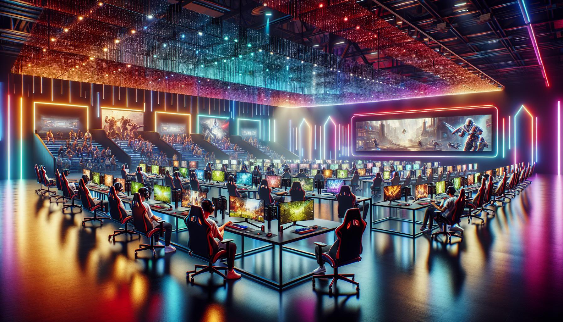 The arena features state-of-the-art facilities equipped with the latest gaming hardware. Multiple gaming stations offer top-tier processors and graphics cards, ensuring high-performance gameplay. Ergonomic setups and advanced cooling systems provide comfort during extended sessions. Spectators benefit from high-definition screens and immersive sound systems, creating an engaging viewing environment.